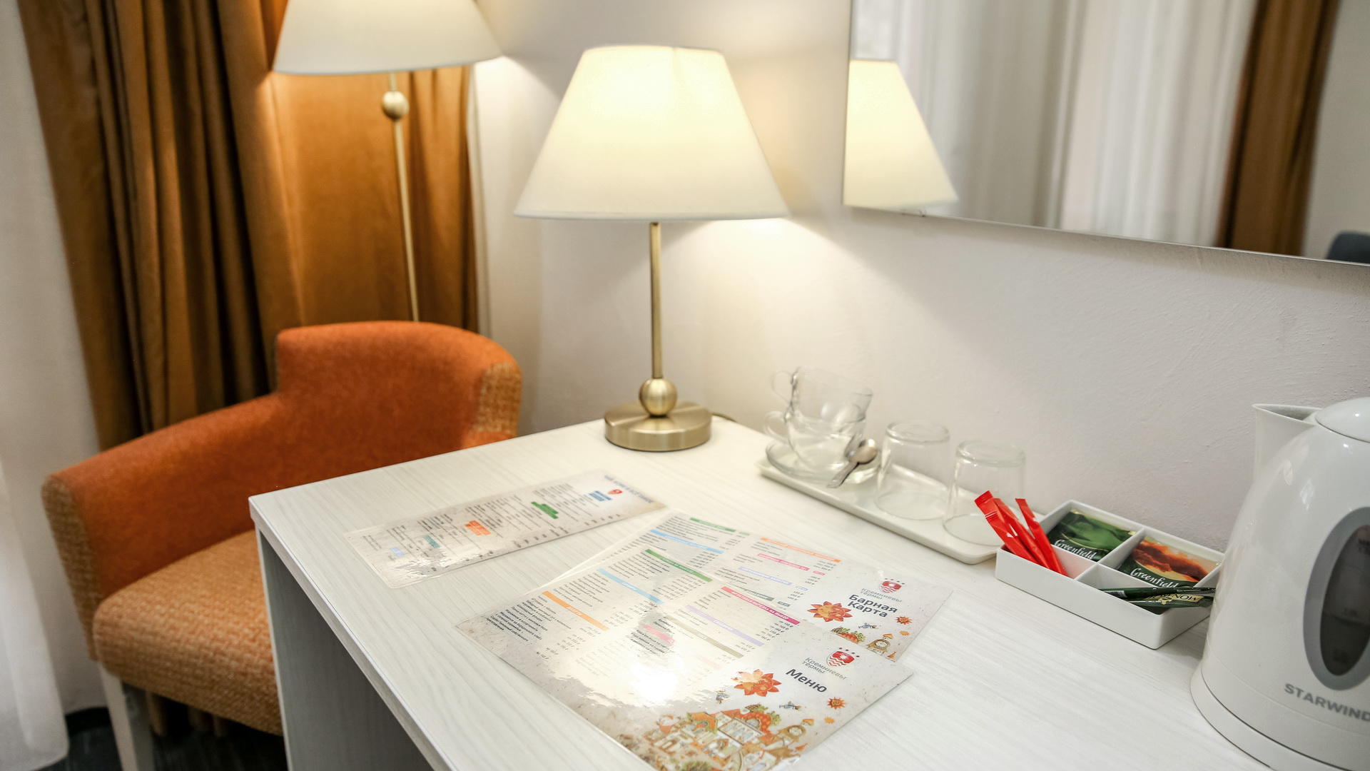 Уютный номер с большой двуспальной кроватью или двумя односпальными. Дополнительное спальное место – на раскладной кровати «Евро 700»