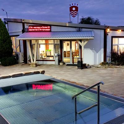 Прохладная купель: вода без добавления реагентов с ежедневной заменой воды и очищением чаши. Размеры: 1,8*1,9 м; глубина 1,7 м. Температура зависит от состояния окружающей среды, варьируется в пределах от + 15° С до +32° С