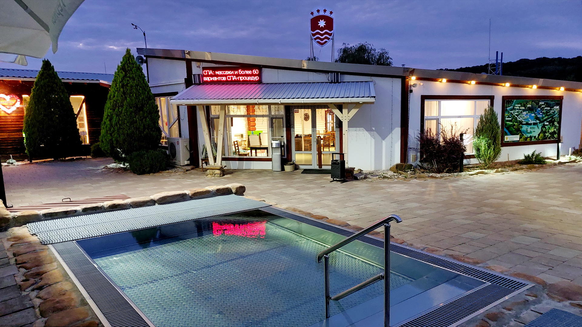 Индивидуальным круглосуточным бассейном также могут похвастать постояльцы шале «Усадьба». Их термальный оазис разделён на 2 части, в которых поддерживается разная температура для контрастов водных процедур.